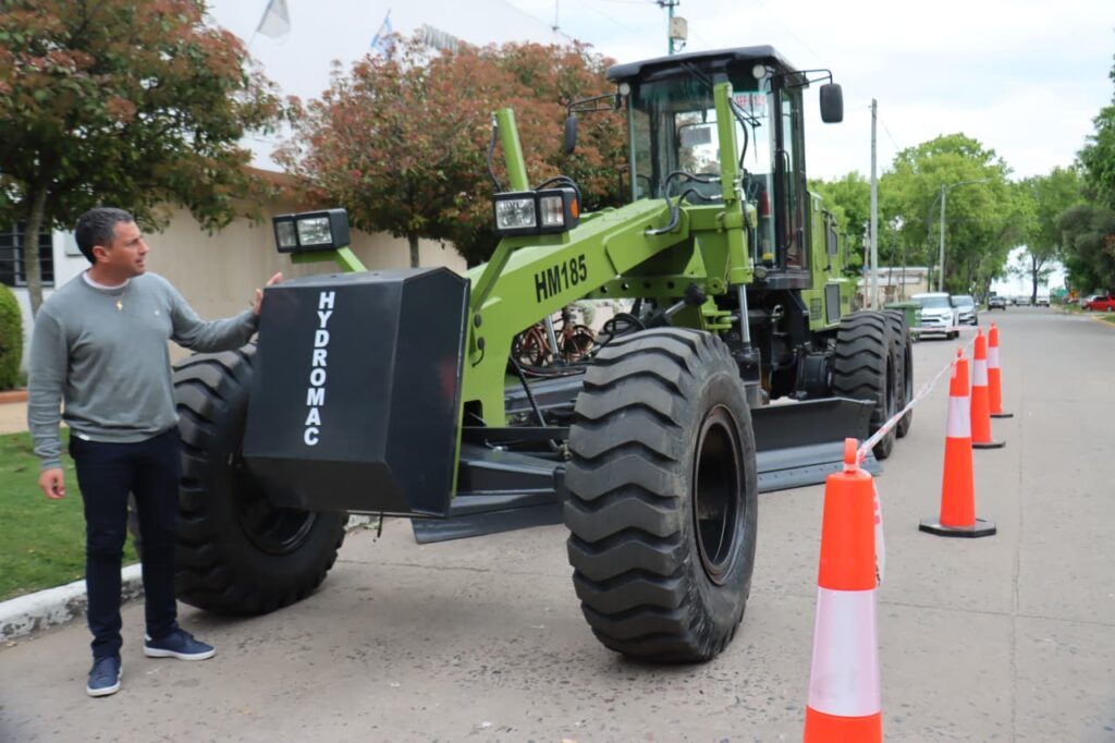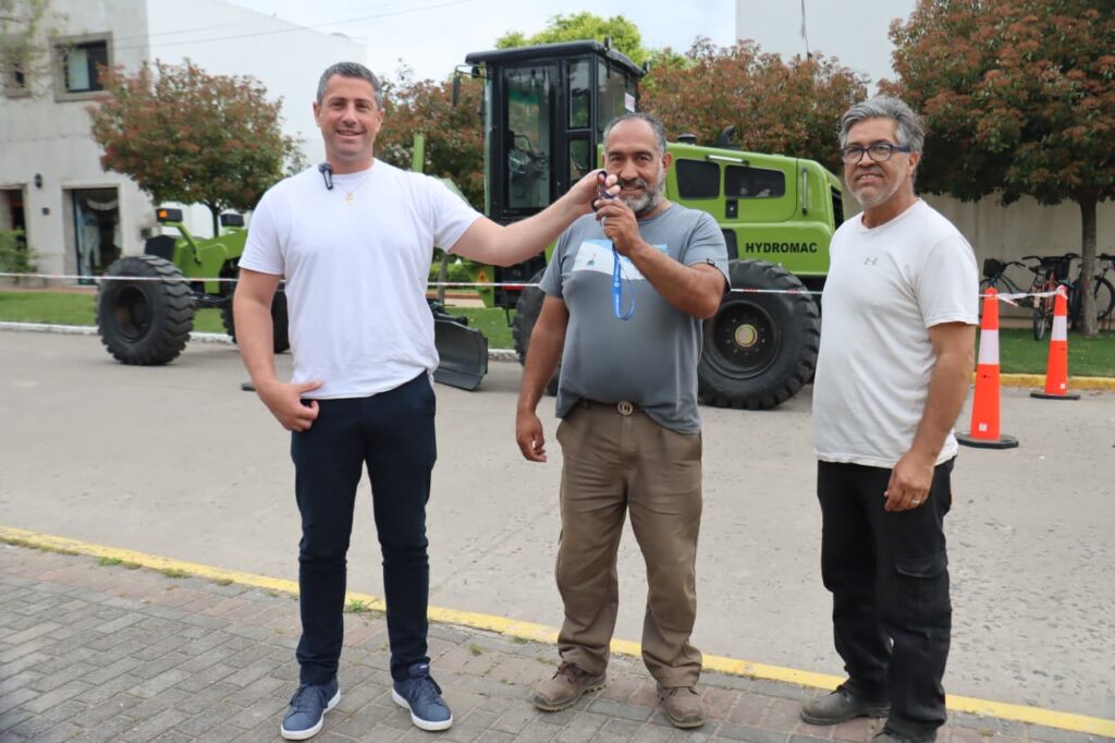 El Intendente Municipal Sebastián Walker realizó la entrega de una nueva Motoniveladora al director de Servicios Urbanos Julián Cuestas.