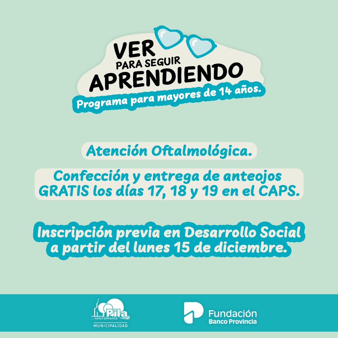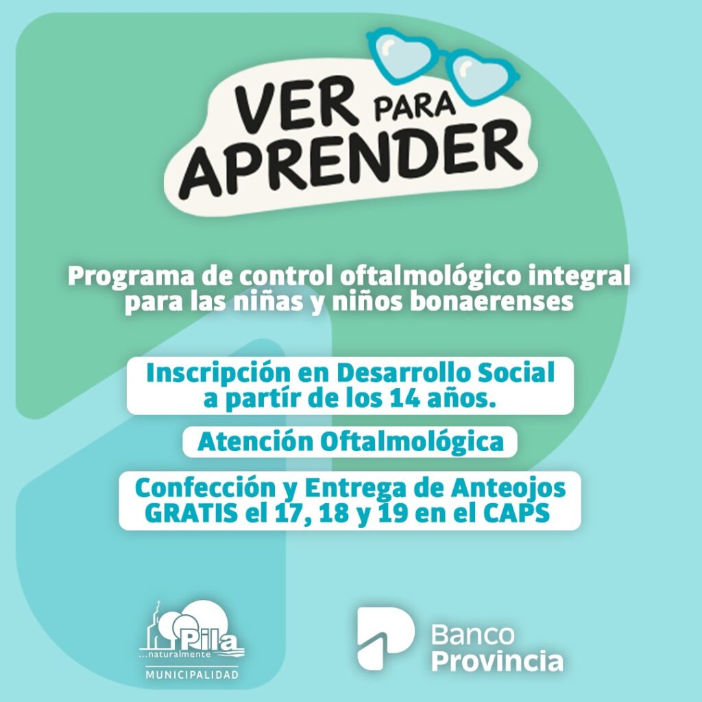 👉🏻 La Fundación Banco Provincia estará presente en Pila con el Programa «Ver para seguir aprendiendo»: Atención oftalmológica para mayores de 14 años, confección y entrega de anteojos de manera gratuita 👏🏼👏🏼
