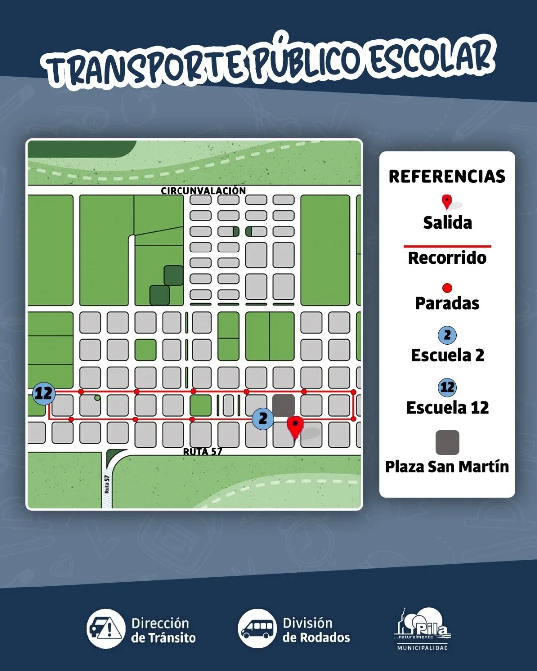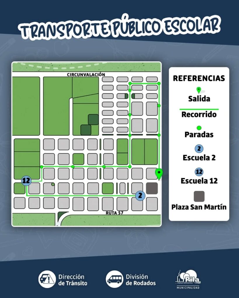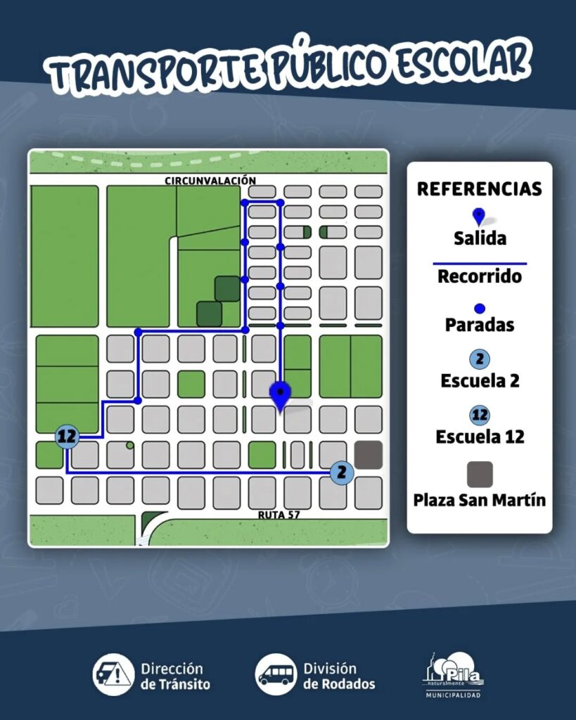 Desde mañana, lunes 3 de marzo, se reanuda el servicio de transporte escolar, que volverá a recorrer distintos puntos del ejido urbano para trasladar a alumnos y alumnas hacia la Escuela Primaria N°12 y la Escuela Primaria N°2.